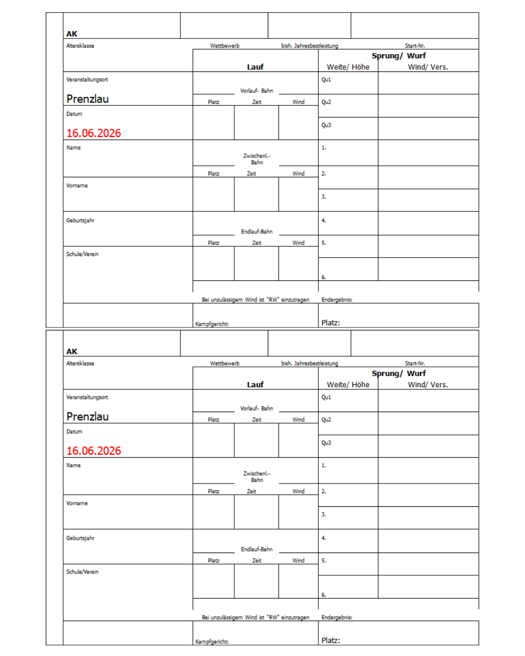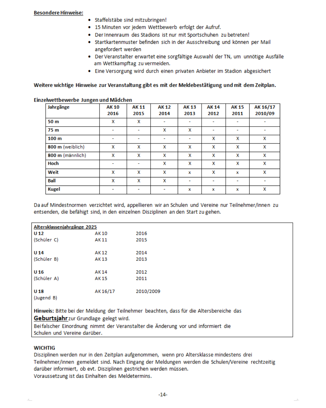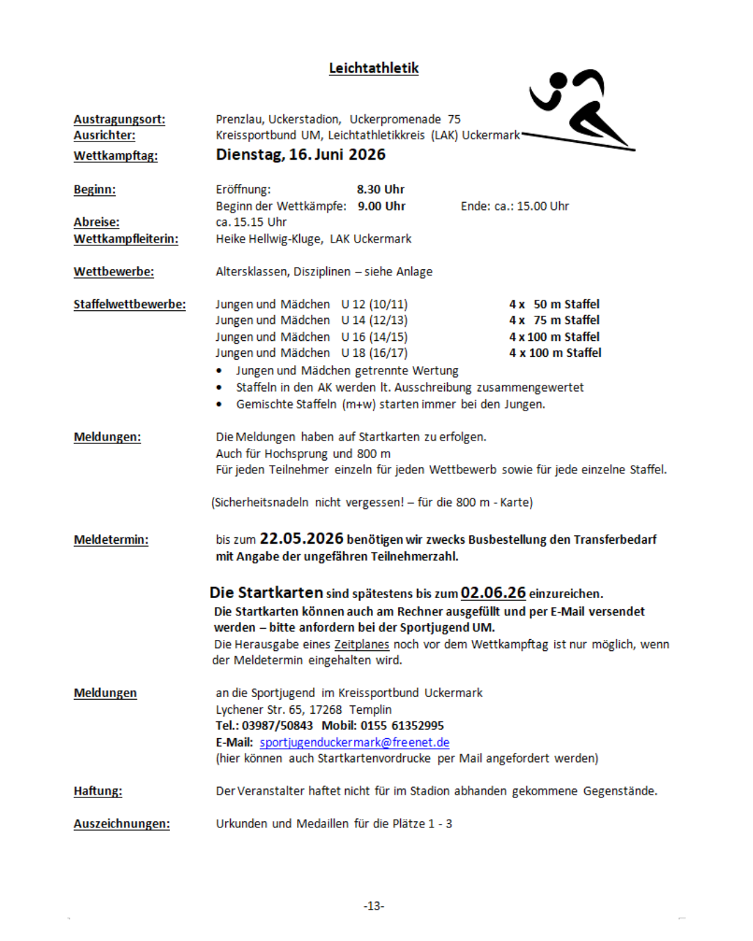 Ausschreibung Leichtathletik: