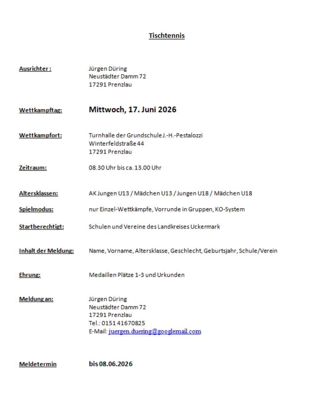 30. Jahre Kinder- & Jugendsportspiele - Tischtennis