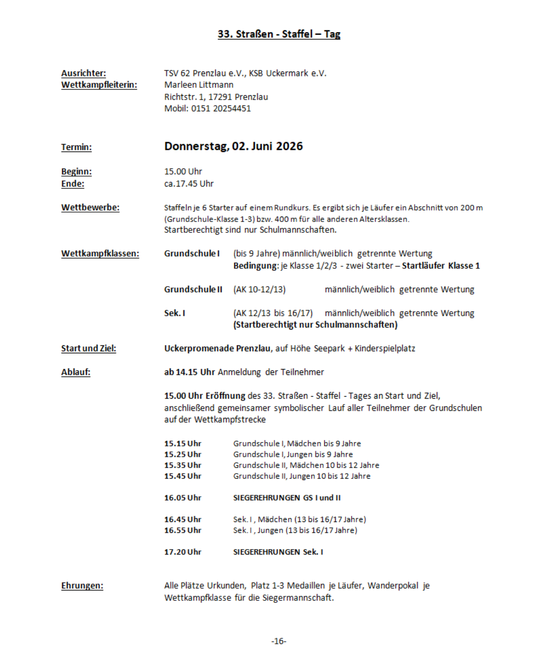 Ausschreibung 33.Straßen-Staffel-Tag:
