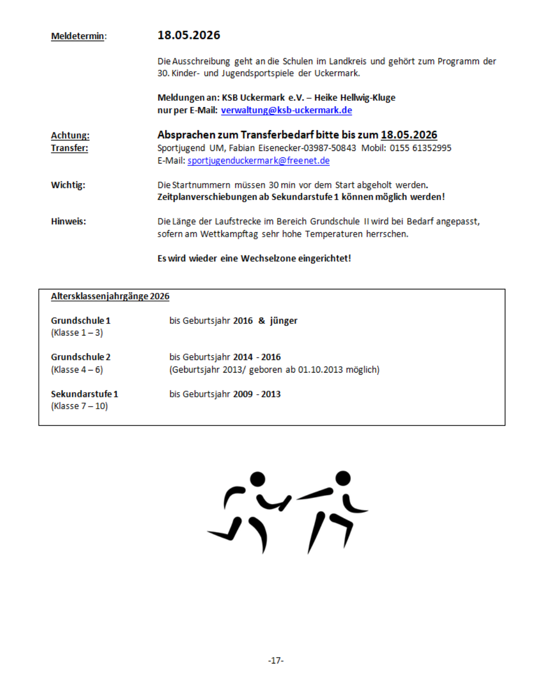 30. Kinder- & Jugendsportspiele - Straßenstaffeltag